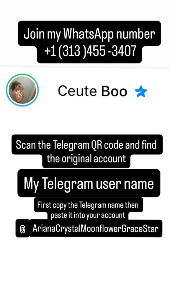 I'm Local Lady Come play with me a t $70/QV $100/30 min $160/HR Always Available Incall and outcall,car fun, Come play with me I have lost my number. If you need my service please contact my personal number 8 1 6 3 3 0 8 2 6 5 𝐈’𝐦 𝐎𝐧𝐥𝐢𝐧𝐞 𝐍𝐨𝐰: Please scan the QR code of Telegram and find the original account. Telegram name - @ArianaCrystalMoonflowerGraceStar